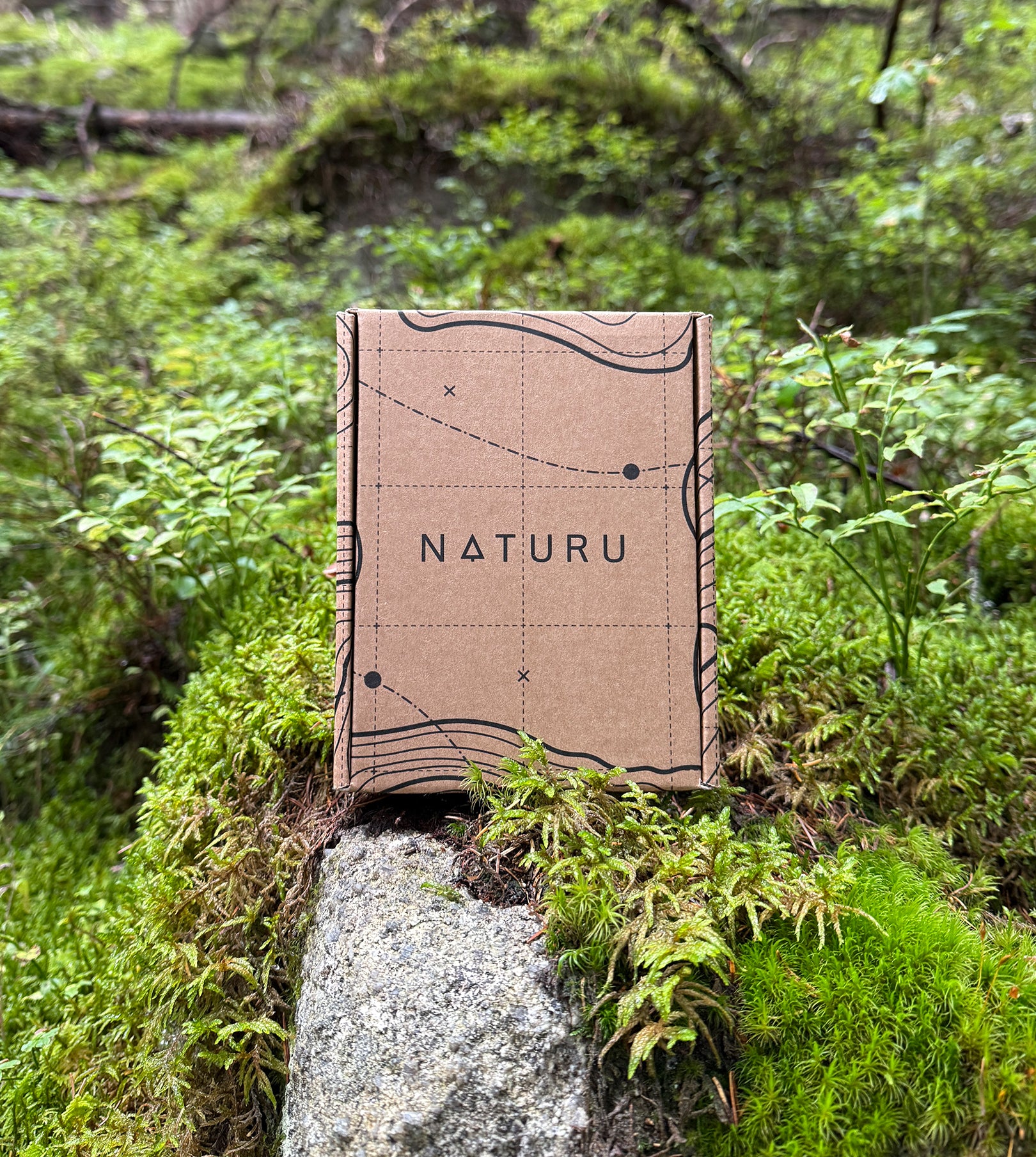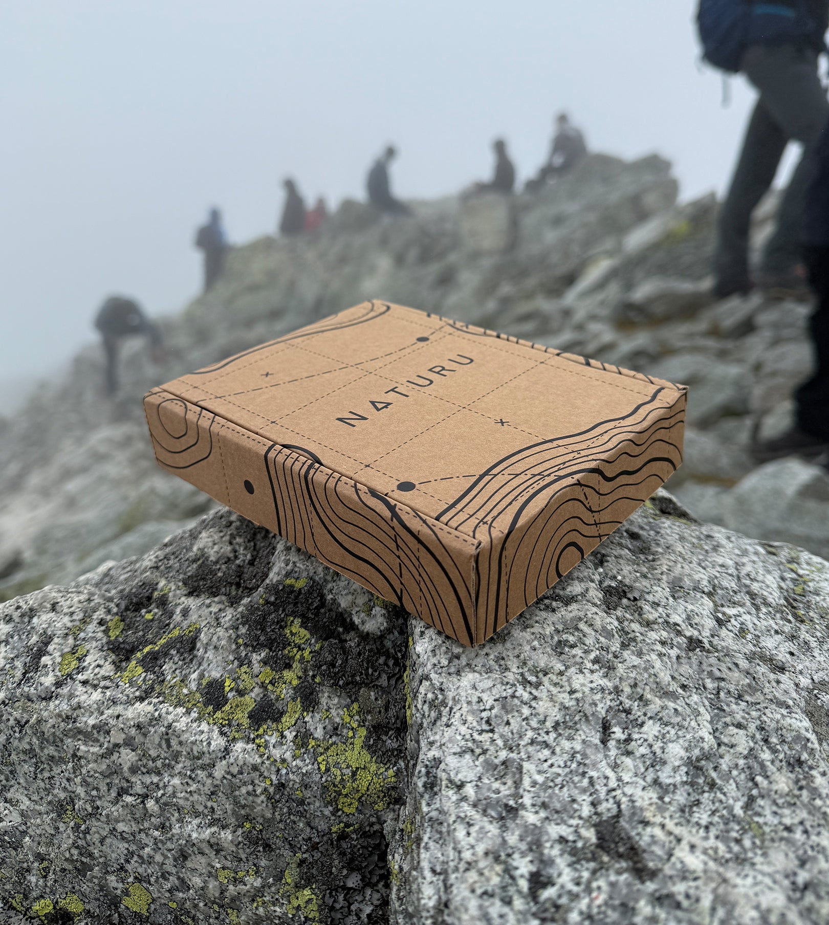 Darčeková krabička na 3 až 6 turistických pasov z ekologického kraft kartónu. Na prednej strane má vytlačené logo Naturu a po celom povrchu vzor vrstevníc. Dodávame ju zloženú – stačí ju jednoducho otvoriť a vložiť pasy. Skvelá voľba pre tých, ktorí si chcú namixovať vlastný darčekový set.