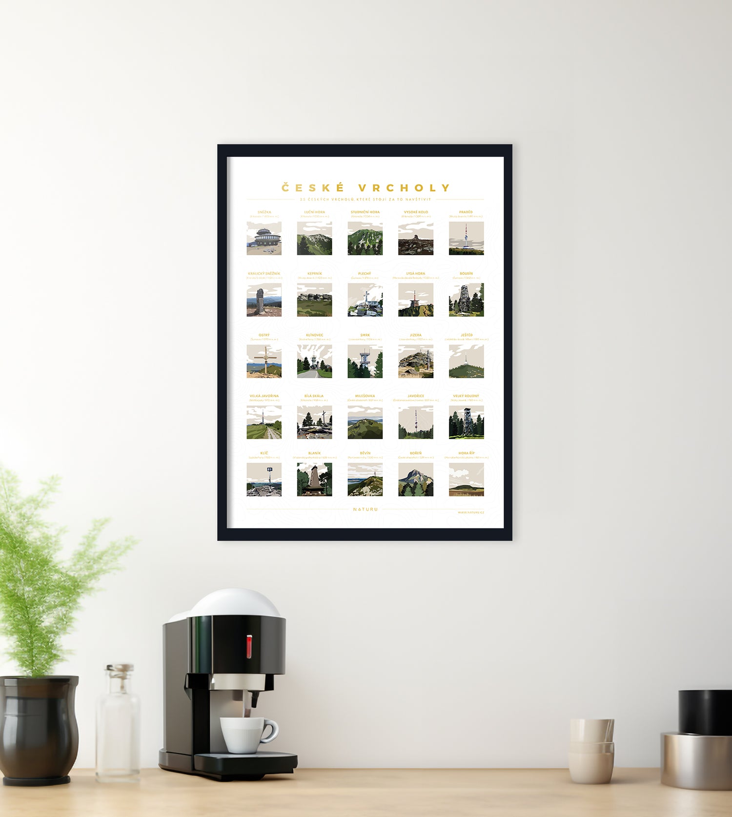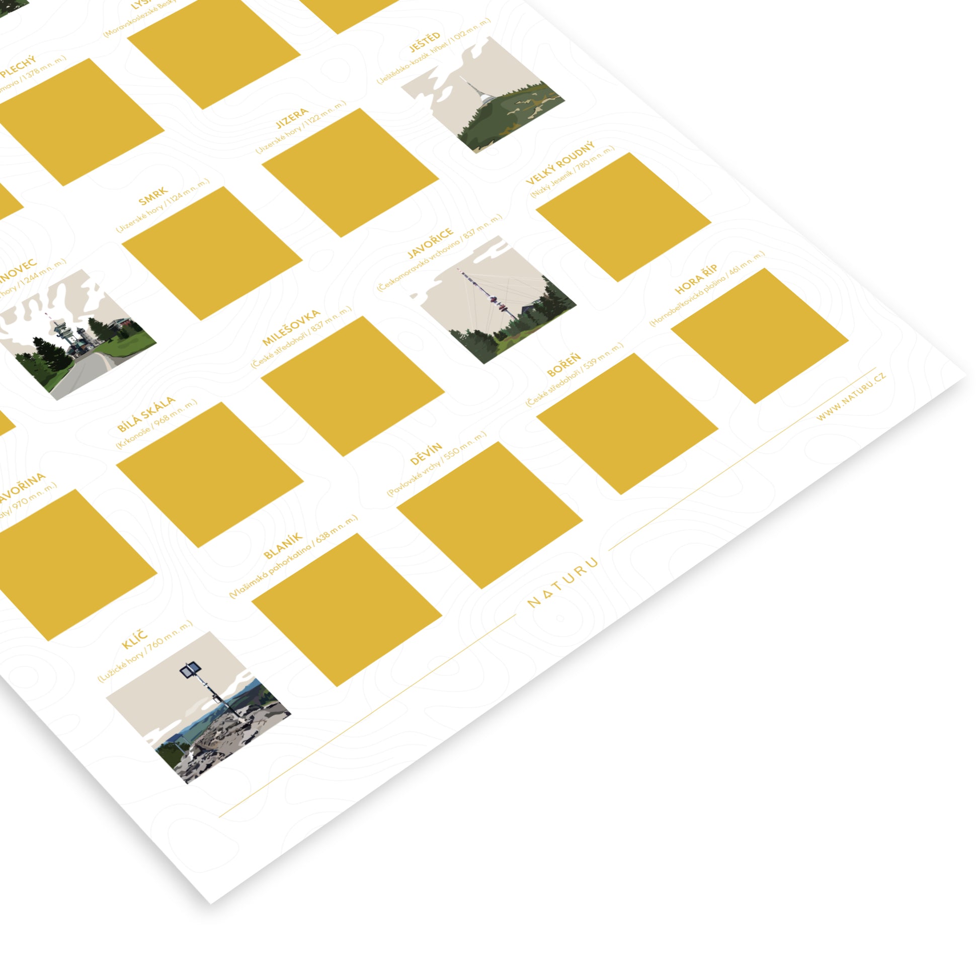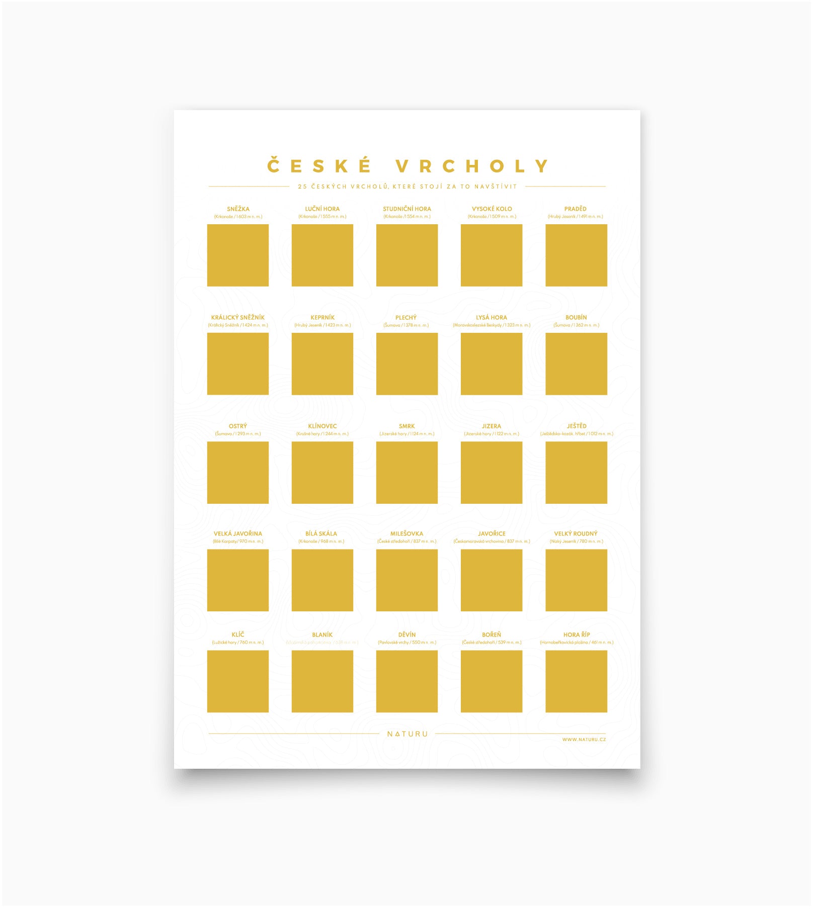 So stieracím plagátom České vrcholy budete mať o nápady na výlety po Česku postarané. Pod 25 stieracími políčkami nájdete nádherné ilustrácie najkrajších českých pohorí, ako sú Krkonoše, Jeseníky, Jizerské hory či Orlické hory. Každé z týchto pohorí ukrýva jedinečné miesta, ktoré stoja za návštevu. Zotrite stieracie políčko po každom výlete a uchovajte si spomienku na ďalšie zdolané ciele. Tento originálny plagát je nielen krásnou dekoráciou, ale aj skvelou motiváciou na spoznávanie prírodných krás českej krajiny.