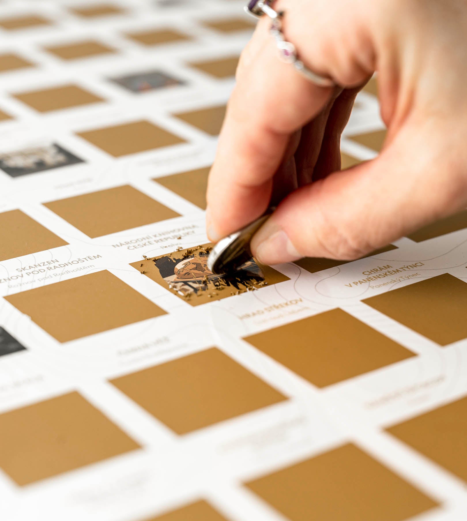 Objavte všetkých 100 miest v Česku s naším stieracím plagátom! Každé zo sto políčok ukrýva jedinečnú ilustráciu s originálnym tipom na výlet po Českej republike. Stierací plagát posielame v krabičke spolu s ochranným papierom, ktorý chráni stieracie plochy pred poškodením.