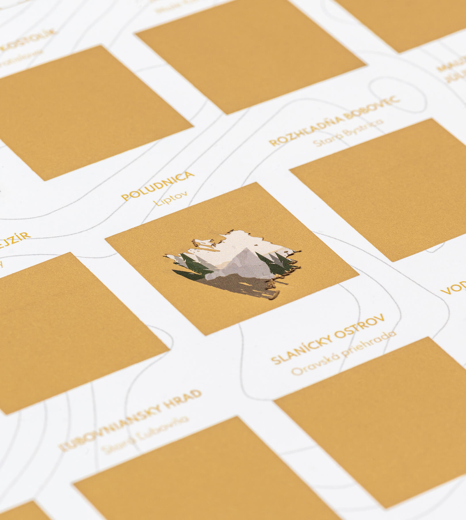 Stierací plagát TOP 100 Slovensko podnecuje a motivuje k poznávaniu krás Slovenska. Prostredníctvom stovky originálnych ilustrácií predstavuje miesta, ktoré treba navštíviť, a výlety, ktoré sa oplatí absolvovať. Tento stierací plagát vo formáte A2, je vhodný ako pekný darček aj ako interiérová dekorácia každého vášnivého turistu. Poslúži tiež ako inšpiratívny bucket list TOP 100 miest na Slovensku. Vaše cestovateľské zážitky oslávite zotretím príslušnej zlatej plochy, ktorá odhalí farebnú ilustráciu. Nechajte sa inšpirovať unikátnym plagátom, zotierajte políčka a navštívte tie najkrajšie miesta na Slovensku.