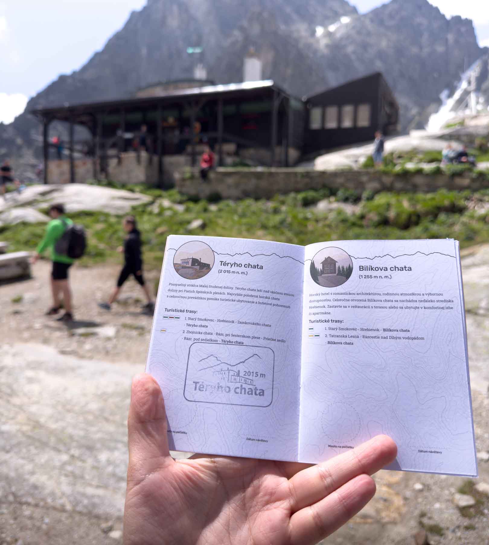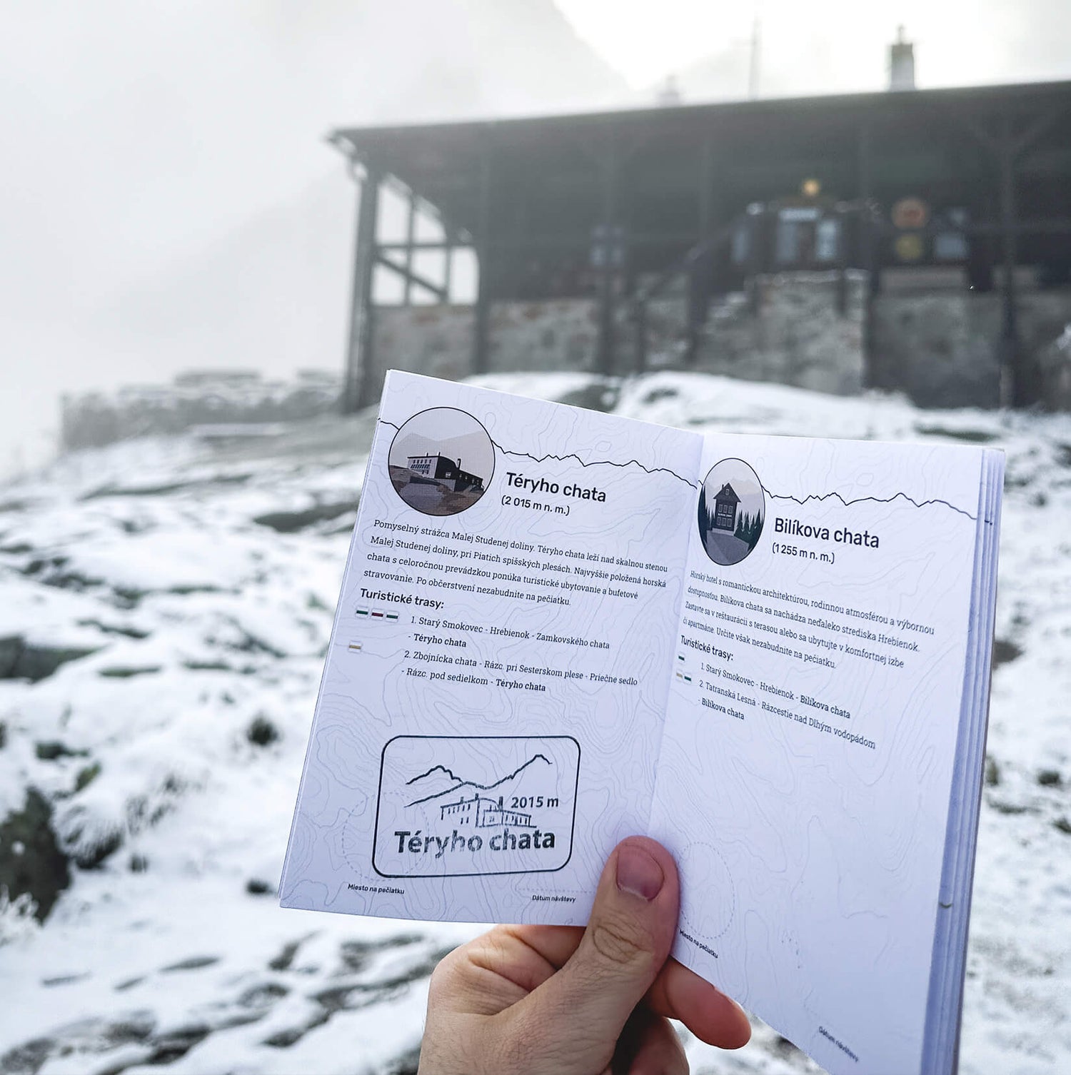 Váš záznamník pre uchovávanie pečiatok z vysokohorských chát a pokladnica spomienok z turistických chodníkov v Západných, Vysokých a Belianskych Tatrách zo slovenskej a poľskej strany. Každej tatranskej chate je venovaná samostatná strana s originálnou ilustráciou, zoznamom obľúbených trás vedúcich na chatu a miesto vyhradené na umiestnenie pečiatky z chaty.