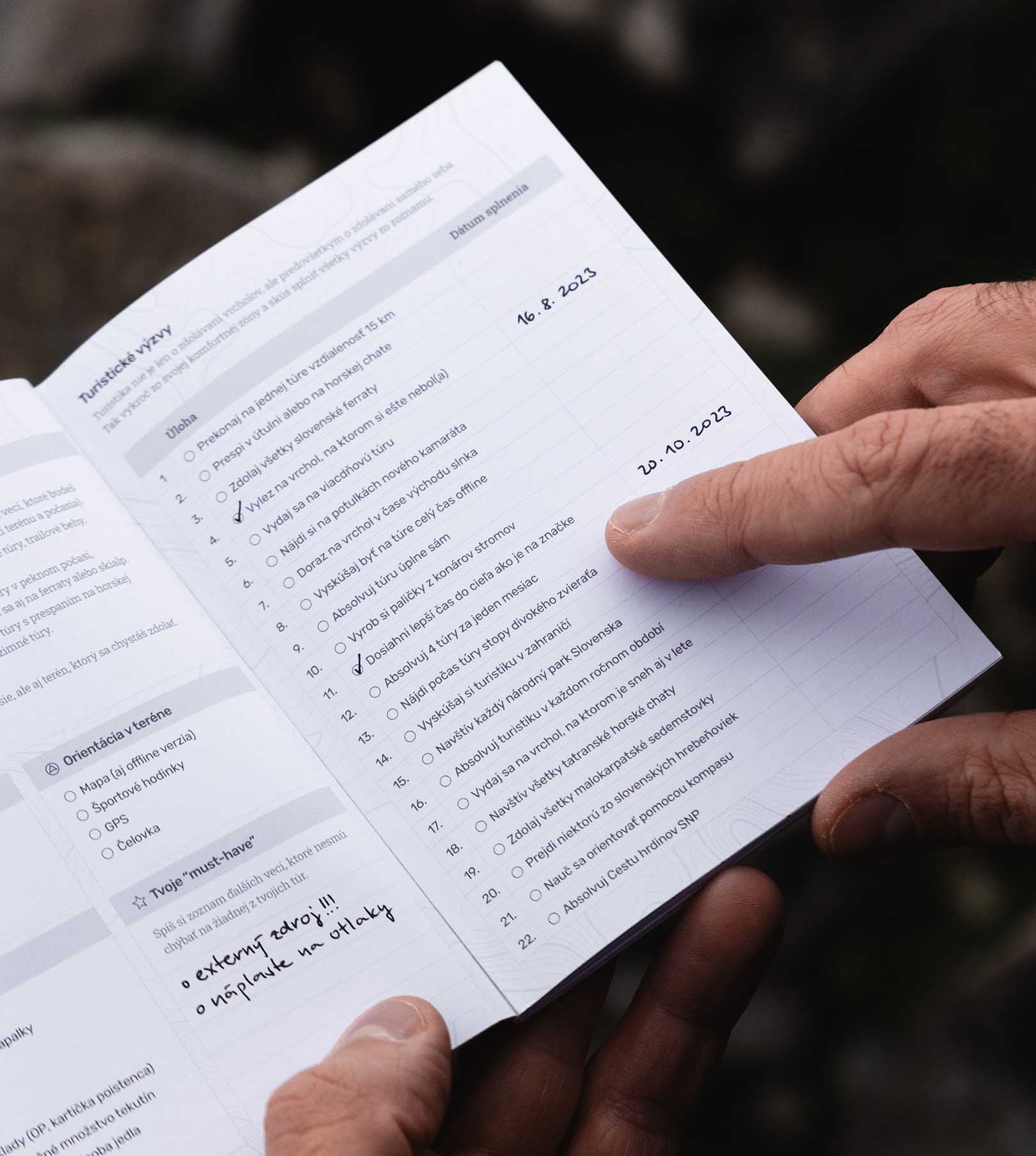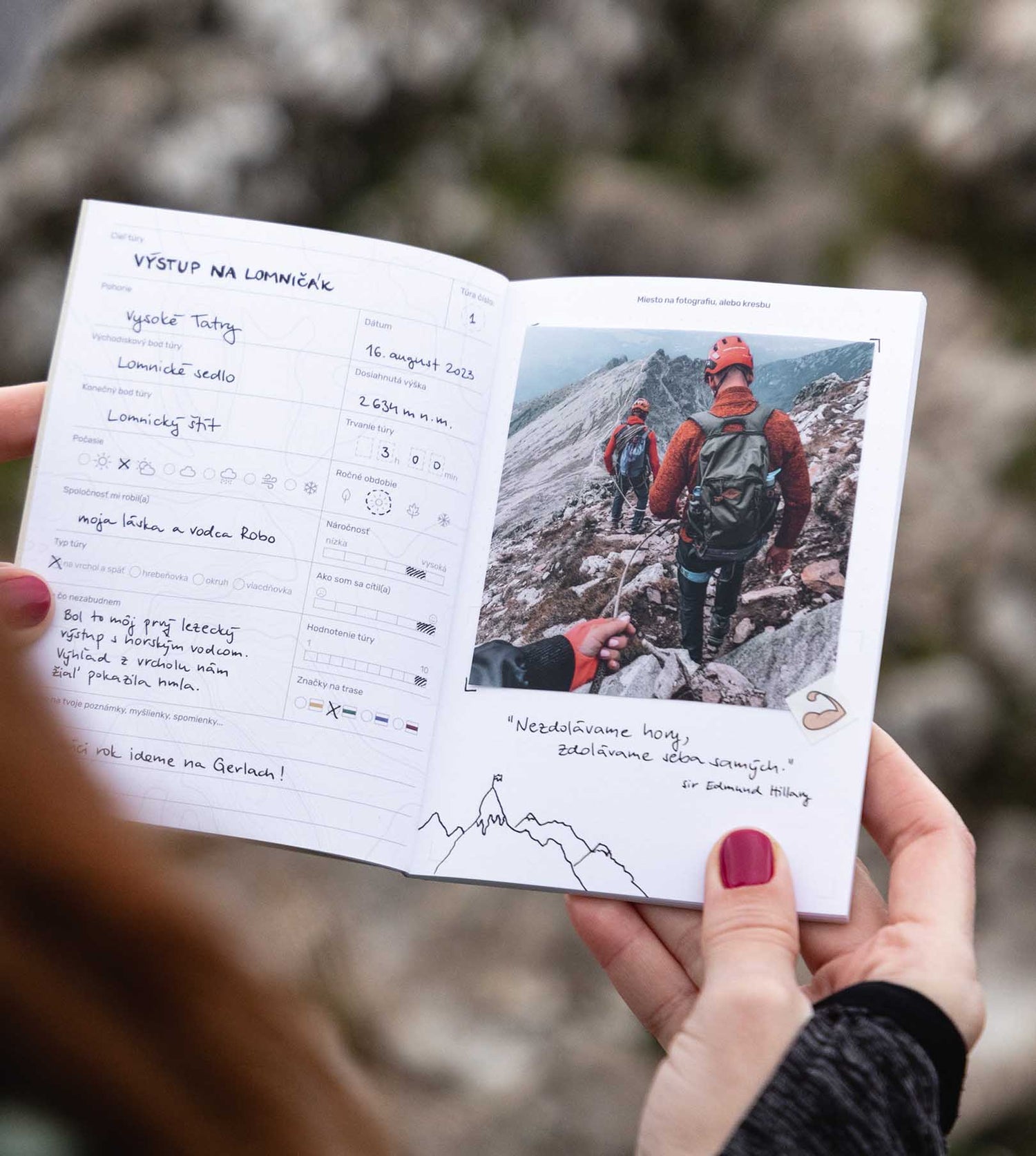 Vďaka Turistickému denníku na dobrodružstvá v prírode nikdy nezabudnete. Vaše spomienky premenia 48 strán denníka na príbeh, ktorý sa stane inšpiráciou aj pre ďalšie generácie turistov. Nájdete v ňom nielen denníček, ale aj tipy na túry či turistické výzvy.